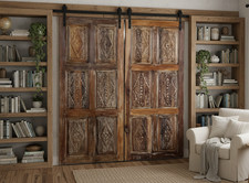 Authentic Vintage Carved Door Rustic Farmhouse Sandwashed Barn Doors 80x36