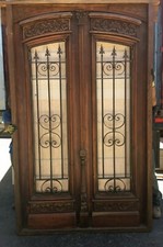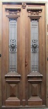 ANTIQUE DOUBLE ENTRY DOOR WITH WROUGHT IRON INSERT X1269