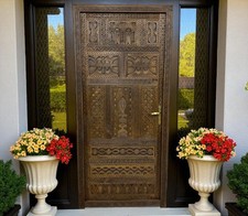 Large Antique Hand Carved Entry Way, 92"H x 64"W, Intricate Detail