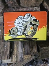 VINTAGE MICHELIN MAN MOTORCYCLE TIRES PORCELAIN ADVERTISING SIGN TIRE 8" X 12"