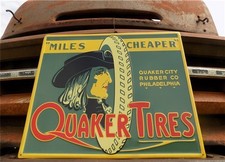 Quaker Tires Sign, Tin Advertising Sign, Gas Service Station Sign, Tires Sign