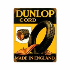 DUNLOP CORD TIRES MADE IN ENGLAND 15" HEAVY DUTY USA MADE METAL ADVERTISING SIGN
