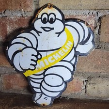VINTAGE MICHELIN MAN TIRES PORCELAIN ADVERTISING DOOR SIGN TIRE 9" X 7"