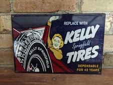 VINTAGE KELLY SPRINGFIELD TIRES PORCELAIN ADVERTISING SIGN WHEELS TIRE 12" X 8"