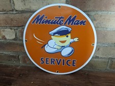 VINTAGE MINUTE MAN SERVICE PORCELAIN ADVERTISING SIGN WHEELS TIRE 12"