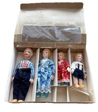 Vintage Dollhouse Porcelain Doll Family Bundle, Dad, Mom, Boy, Girl w/Org Box