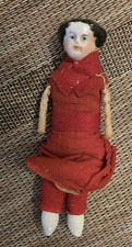 Antique 5 1/2″ German China Head Doll House Size Doll – Glossy Head – As Found