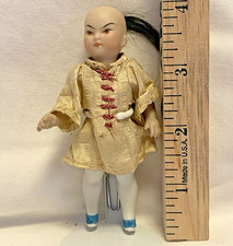 Antique Bisque Qing Asian Oriental Man Doll Queue Simon & Halbig 3-7/8 Changshan