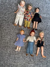 5 Antique Composition German DRESSED DOLLHOUSE BOY/GIRL DOLLS