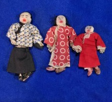Antique Miniature 1920s wire cloth doll family Shaohsing Industrial Mission 3"