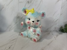 Vintage Relpo 2291 Blue Ceramic Teddy Bear Planter Japan
