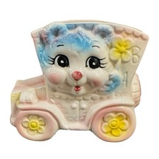 Vtg Caffco Baby Buggy Teddy Bear Ceramic Planter Pink Kitschy Nursery Japan