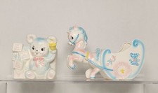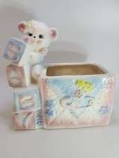Nursery Planter Teddy Bear & Baby Blocks Diaper Pin Unisex Pastel Inarco Vtg EUC