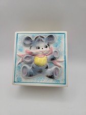 Vtg Baby Teddy Bear Blocks Music Box Planter Container Napco Girl Boy WORKS