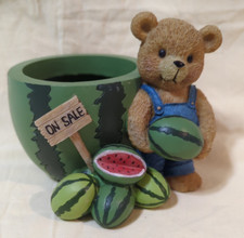 lot of 3 vintage teddy bear planters & ceramic figurine