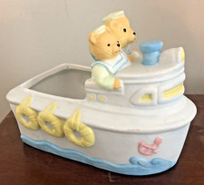 Vintage Ceramic Teddy Bears on Boat Planter Nautical Nursery Decor 7"x6"x4"