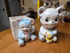 Vintage Twin Bears Planter MCM Pink Blue Nursery Baby Rushton ABC