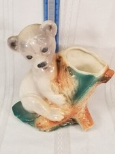 Royal Copley Bear Vase Planter Tree Log Art Deco White Gray Green Vintage USA