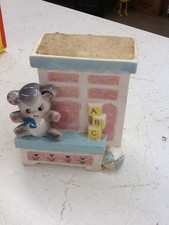 VINTAGE 1959 RUBENS ORIGINALS CERAMIC BABY GRAY BEAR ABC'S BABY PLANTER Cute