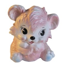 VTG Velco Retro Kitsch Ceramic Animal Planter Pastel Pink Teddy Bear with Bow
