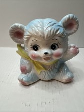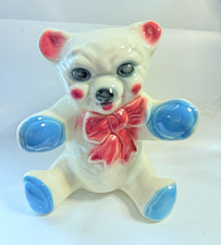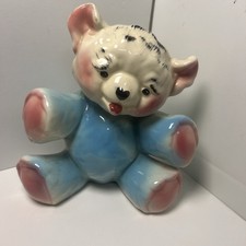 Vintage Nursery Mid Century Teddy Bear Planter Blue Pink Ceramic 6.5" Tall