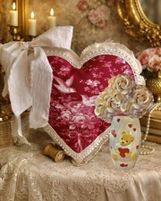 VTG Kitsch Ceramic Teddy Bear Heart Planter Vase Quilted Nursery Decor Valentine