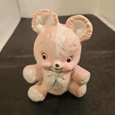 Vintage 1986 Lefton Pink Teddy Bear Duck Planter Ceramic Vintage Nursery Gift