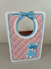 Vintage Lefton Baby Pink Bib Planter Blue Bow Teddy Bear Made In Japan 03857