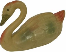Vintage Plastic Swan Blow Mold 3.5" Cream Gold Decoration Toy Animal collectible