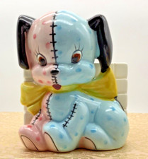 Vintage Ceramic Planter Baby, Stitched Toy Puppy Dog Blue, Pink, 4.5”