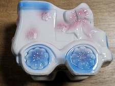 Vintage Ceramic Baby Nursery Planter Toy Truck Pink Blue White