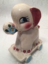 Vintage Elephant Baby Planter Pull Toy California Pottery ? 5 3/4”