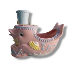 Vintage Napcoware Japan MCM Pink Dolphin Whale Musical Planter 1401 Toy Land Tag