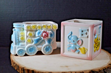 Vintage Ceramic Planter Baby Decor Toy Train Nursery Baby Shower Japan #4678.