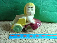 Vintage Ceramic Pottery Girl Doll Pulling Cart Wagon Planter Toy Figurine 5"