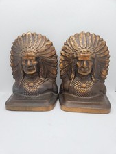 Antique Native American Indian Chief Cast Iron Bookends, Bronze Finish, HEAVY