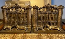 ANTIQUE BRADLEY & HUBBARD B&H DOGS AT THE GATES ART DECO CAST IRON BOOKENDS