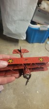 Vtg. Tin Style 6" WWI Metal Tri-Plane Aircraft Toy - Red. Free Shpn