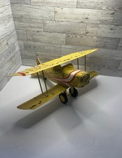 Vintage Handmade Metal BiPlane Airplane Toy Decor Yellow / handmade NICE!