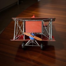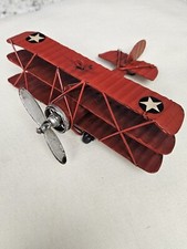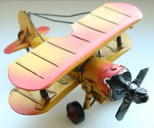 Vintage Collectable BiPlane airplane metal wood propeller shelf desk model toy