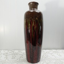 Drip Glaze Pottery Tall Vase Burgundy & Brown Earth Tones - Mid-Century