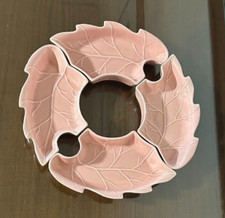 Vtg California Pottery MCM Mid Century Pink Leaf Serving Dishes Lazy Susan