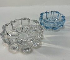 MCM Mid Century Nesting Ashtrays Dishes 4” Clear 3” Blue SET of 2