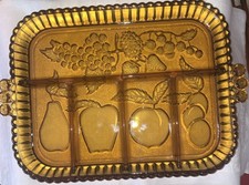 Early To Mid Century Brown Heavy Cut Glass Fruit Tray