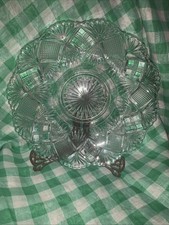 Vintage•8 3/4" Mid Century Cut Glass Platter Serving Dish With 1/4" Pedestal
