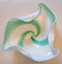 VTG Murano Mid-Century Modern Green White Silver Swirl Art Glass Bowl Dish