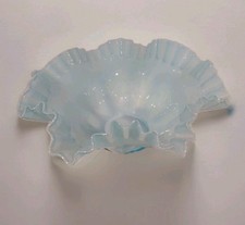 Vintage Stunning Fenton Opal Ruffled Beaded Melon Opalescent Aqua Blue Vase