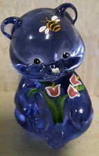 Vtg Fenton Art Purple Glass Bear Smiles For You Figure Hand Painted Signed