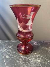 Vintage Fenton Mary Gregory Hand Painted Cranberry Art Glass Vase 1970's Girl