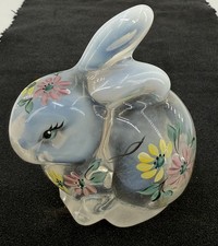 Fenton Blown Glass Bunny Rabbit Figurine Hand Painted Signed, Artist J.A. Green